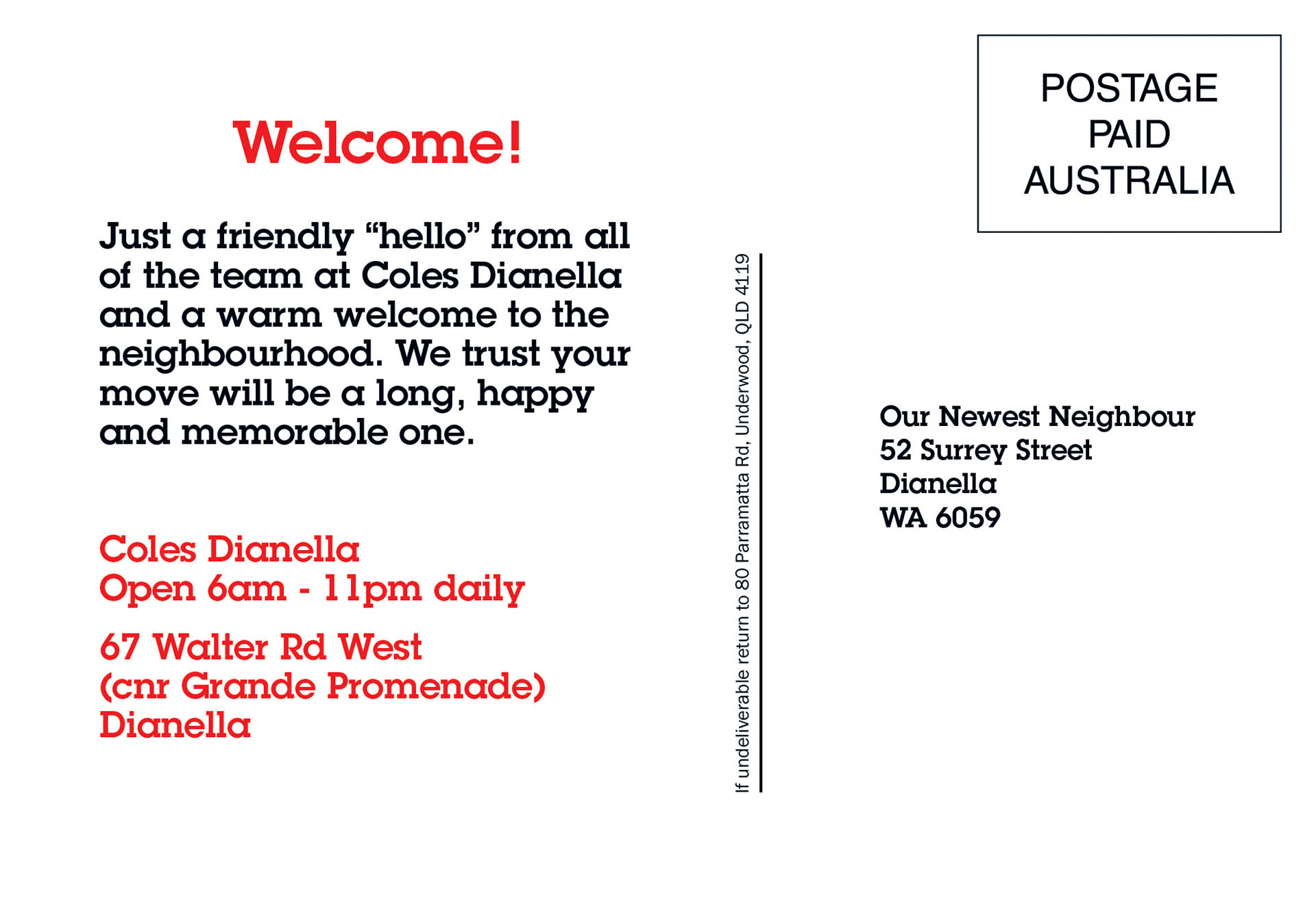 Nice Work designed print runs totalling over 23 million postcards, flyers and brochures for the New Movers program. The company has subsequently morphed into WelcomeConnect.